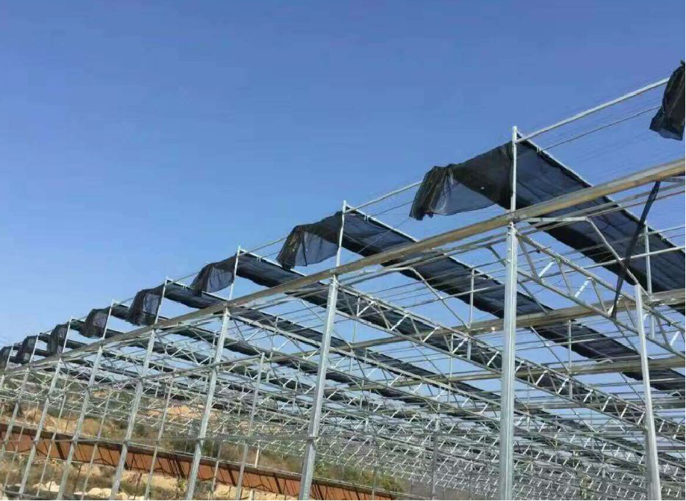 2.顶架:用竹竿(长度自己控制),东西两排,间隔60cm。正面用竹片与地面连接;